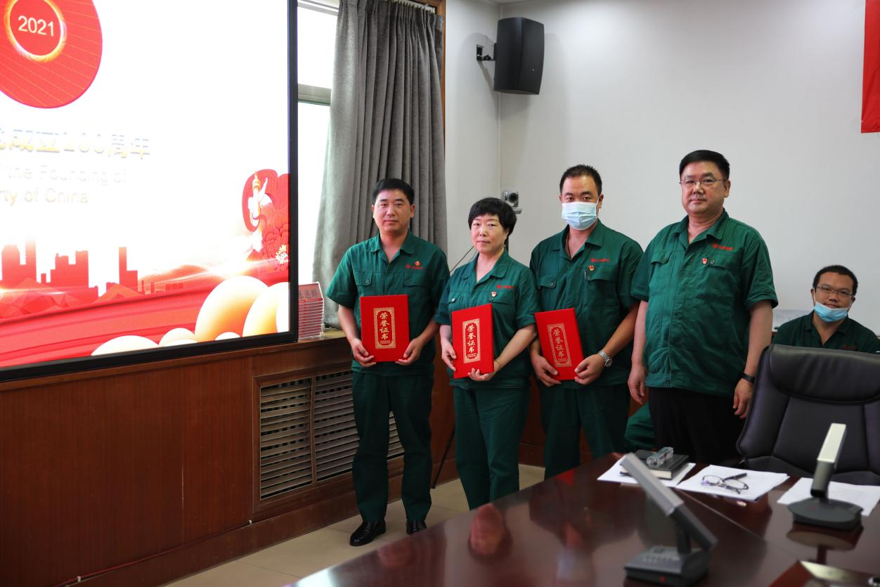 大会上兴柏集团党支部书记刘须华给有50年党龄的老党员张路平同志及荣获2021年度优秀党员颁发了纪念章和证书。代表们十分感谢领导和同事们给予的信任,纷纷表示,未来会在自己的岗位上监守己任、努力创新,在平凡的岗位上做出不平凡的事迹,争取为公司做出更多的贡献。