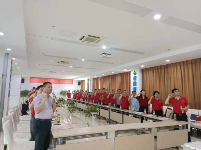 党支部书记、董事长沈运河带领全体党员重温入党誓词。